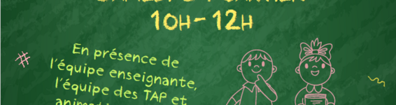 L’école a le plaisir d’inviter les familles des futurs élèves de Petite Section à une matinée portes ouvertes le samedi 31 janvier, de 10h à 12h, en vue de la rentrée scolaire 2026-2027.