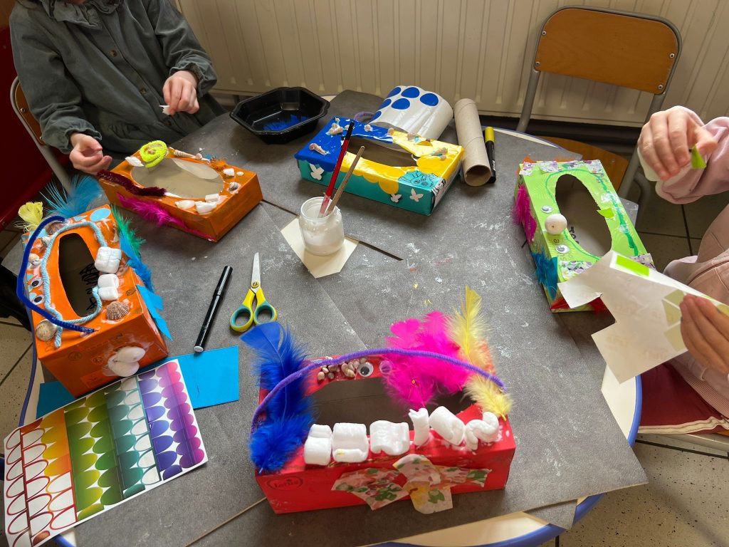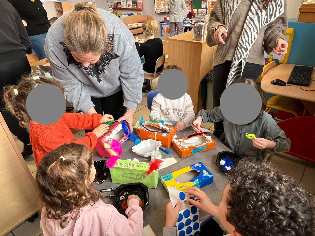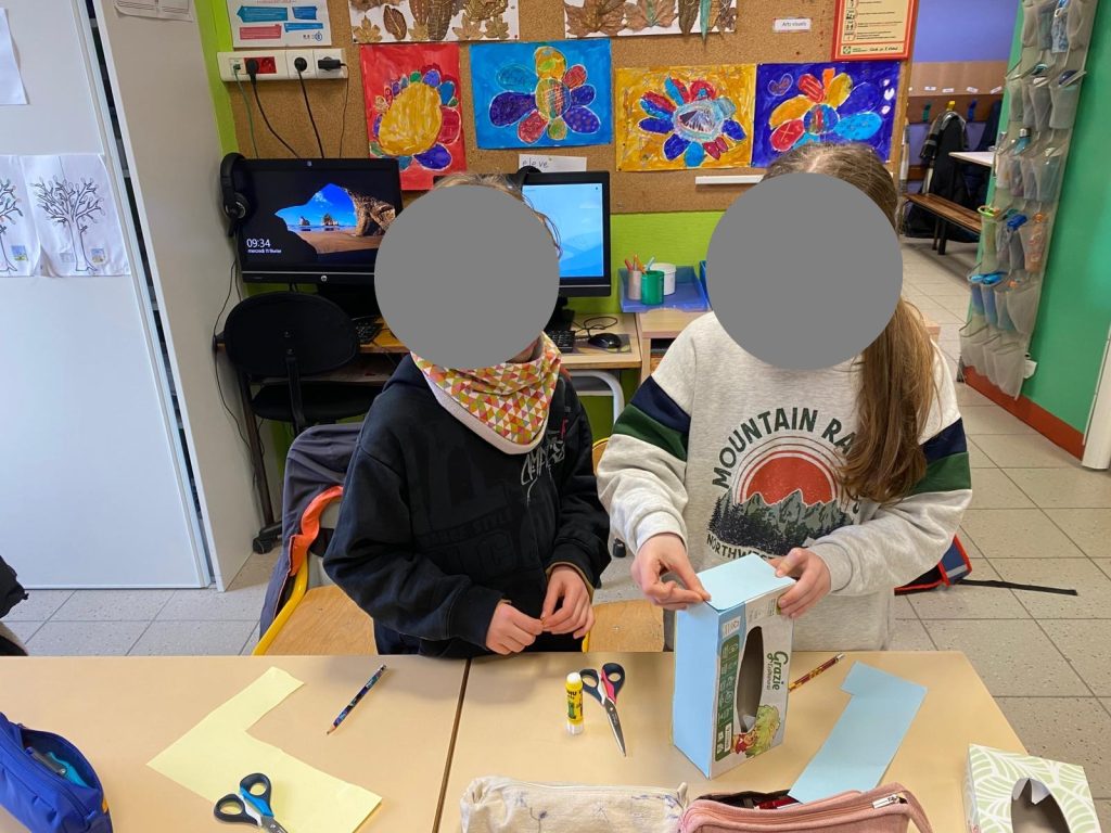 Dans le cadre de notre projet autour des usages du numérique et du bien-être des enfants, une matinée interclasse a été organisée afin de permettre à tous les élèves de fabriquer leur propre boîte Croc’écran. Pour favoriser l’entraide et le partage, les élèves de toutes les classes ont été mélangés, en veillant à regrouper les fratries. Les plus grands ont ainsi accompagné les plus jeunes dans les différentes étapes de fabrication, créant un véritable moment de coopération et de responsabilité.